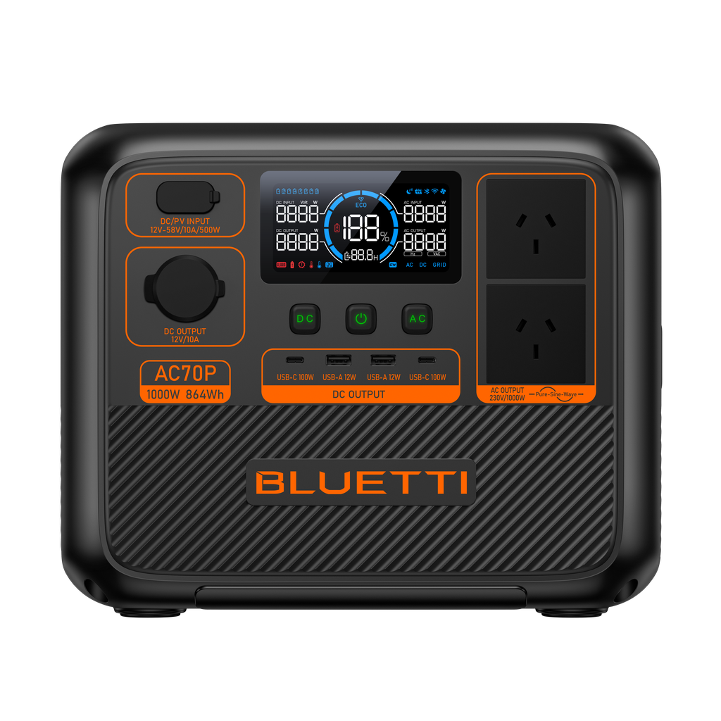 ¡Mejore sus soluciones de energía en movimiento con la central eléctrica BLUETTI AC70P! Con una sólida capacidad de 864 Wh y una potencia continua de 1000 W, energiza sin esfuerzo tus dispositivos esenciales durante aventuras al aire libre, escapadas en vehículos recreativos o momentos acogedores en casa. El diseño liviano y portátil garantiza que la energía ininterrumpida esté siempre a su servicio cuando la necesite.